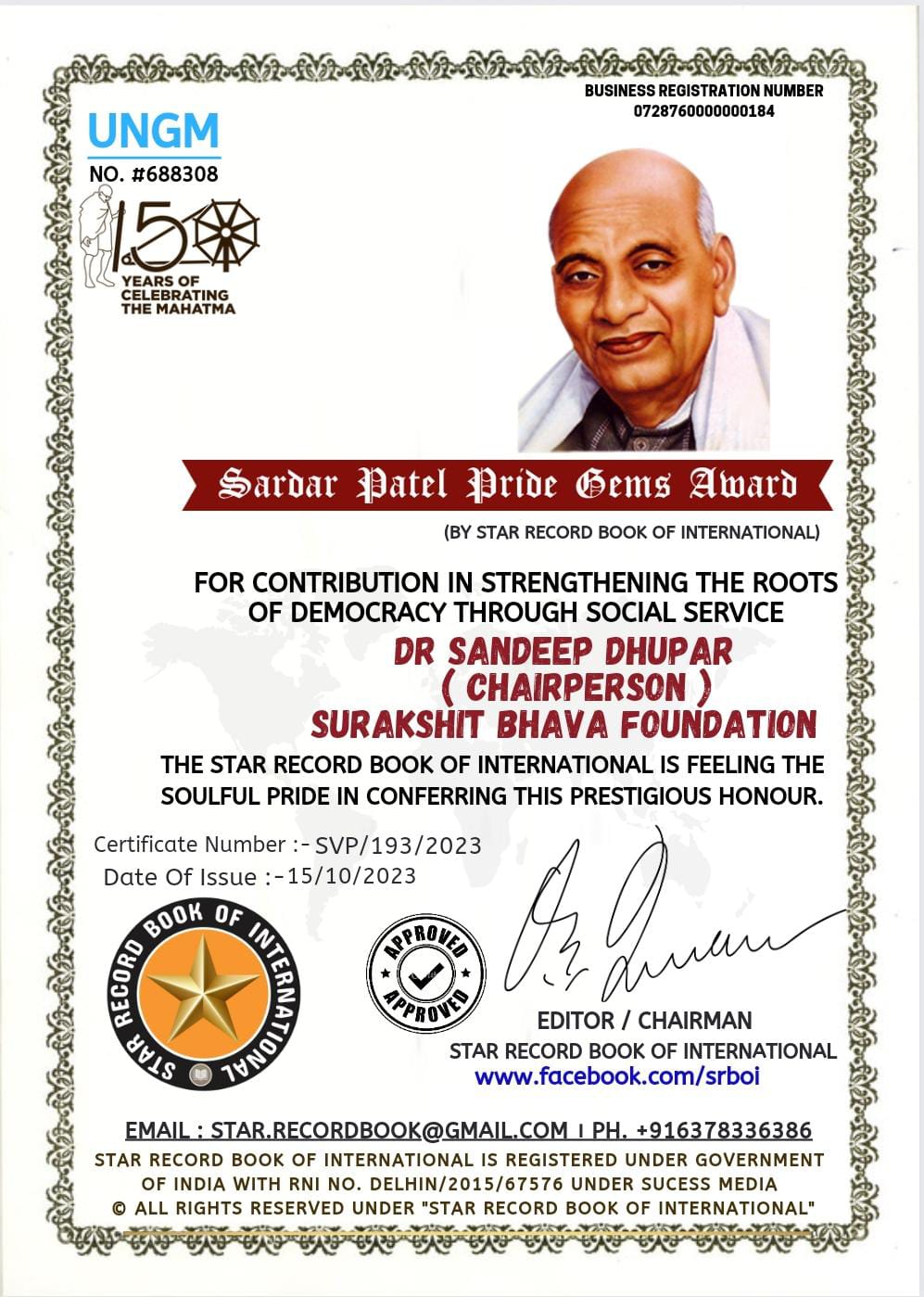 Sardar Patel Pride Bems Award