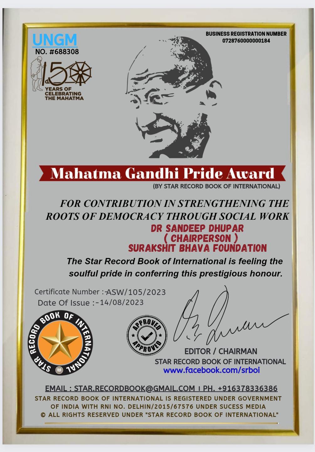 Mahatma Gandhi Pride Award