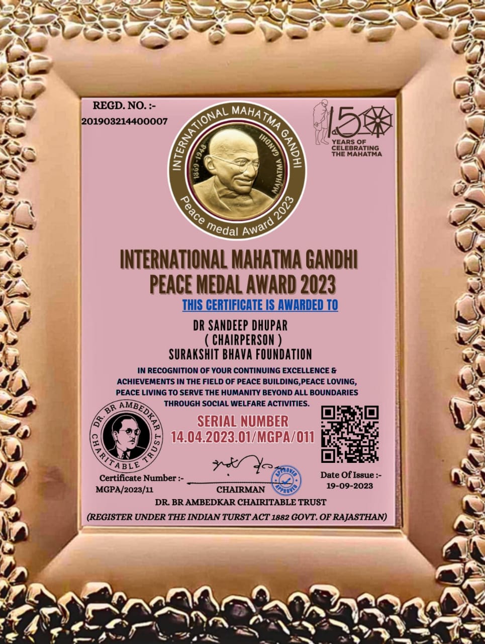 International Mahatma Gandhi Pease Medal Award