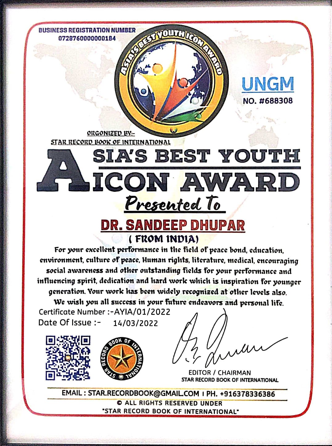 Asia's Best Youth Icon Award