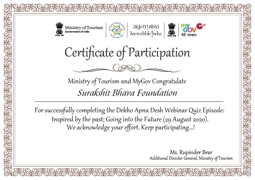 Ministry of Tourism Certification of Participation