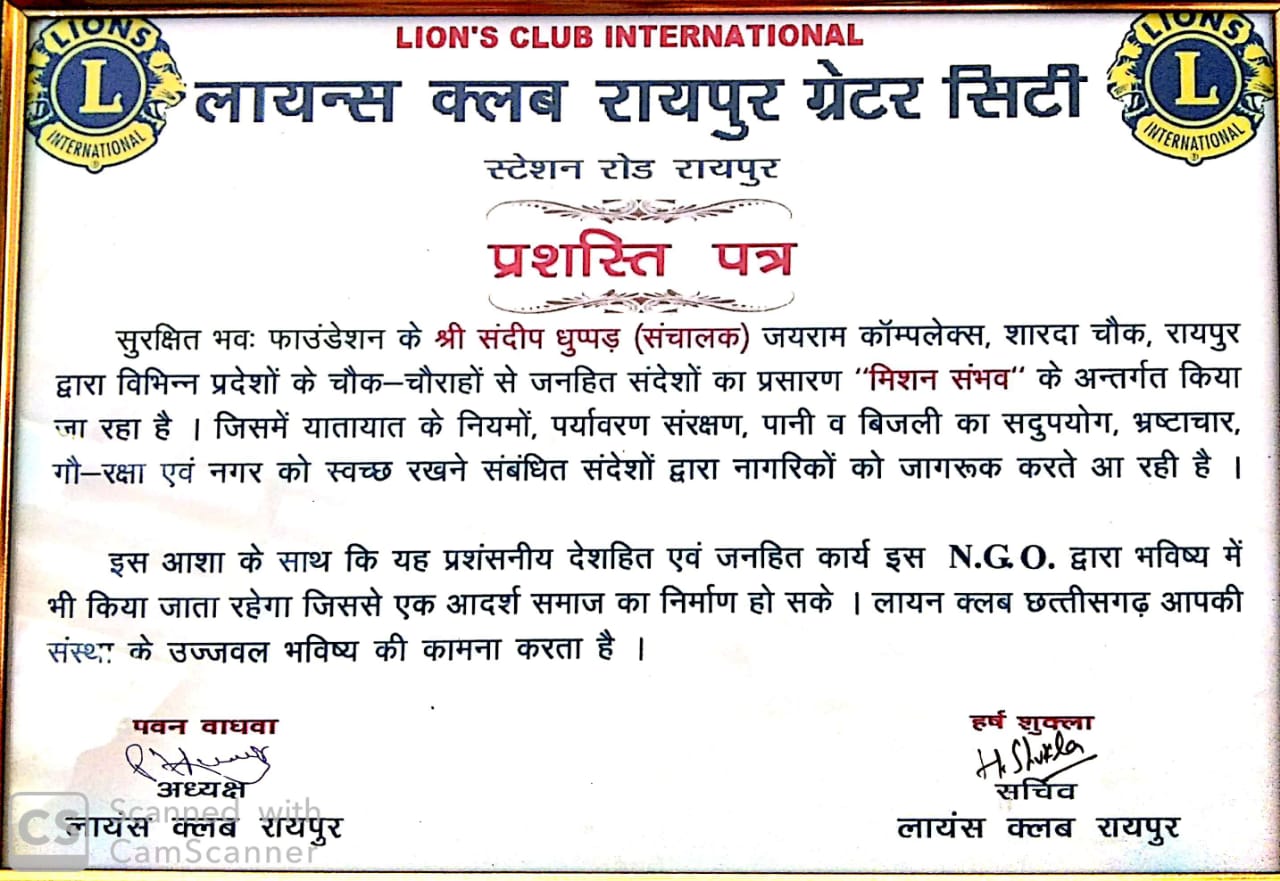 lions Club Raipur Appreciation