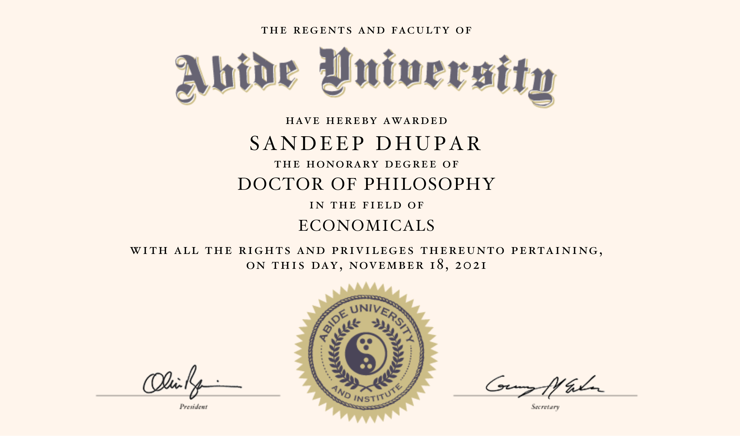 A bride University Certificate OF P.H.D