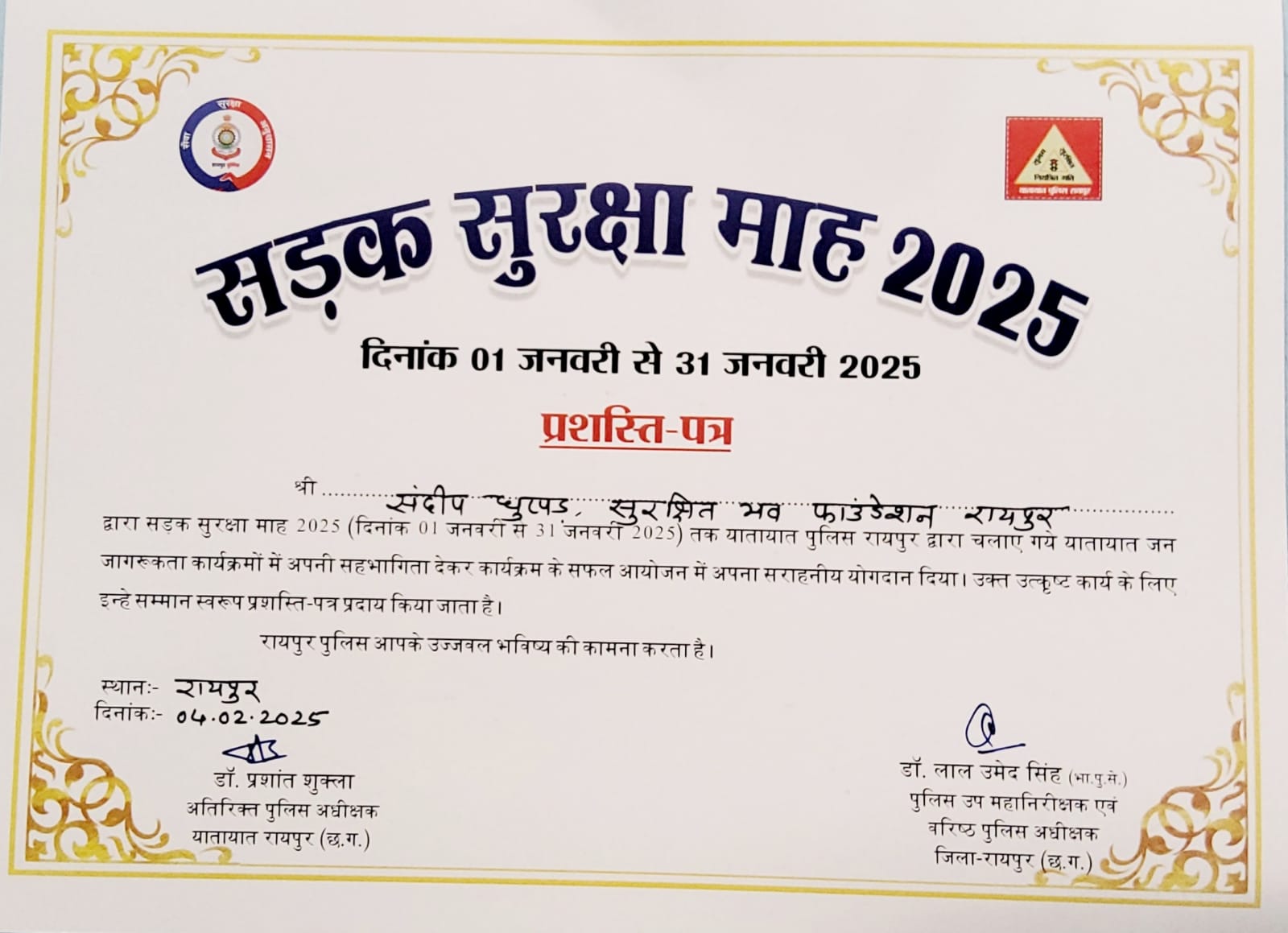 Our Big Win Chhattisgarh State Road Safety Council