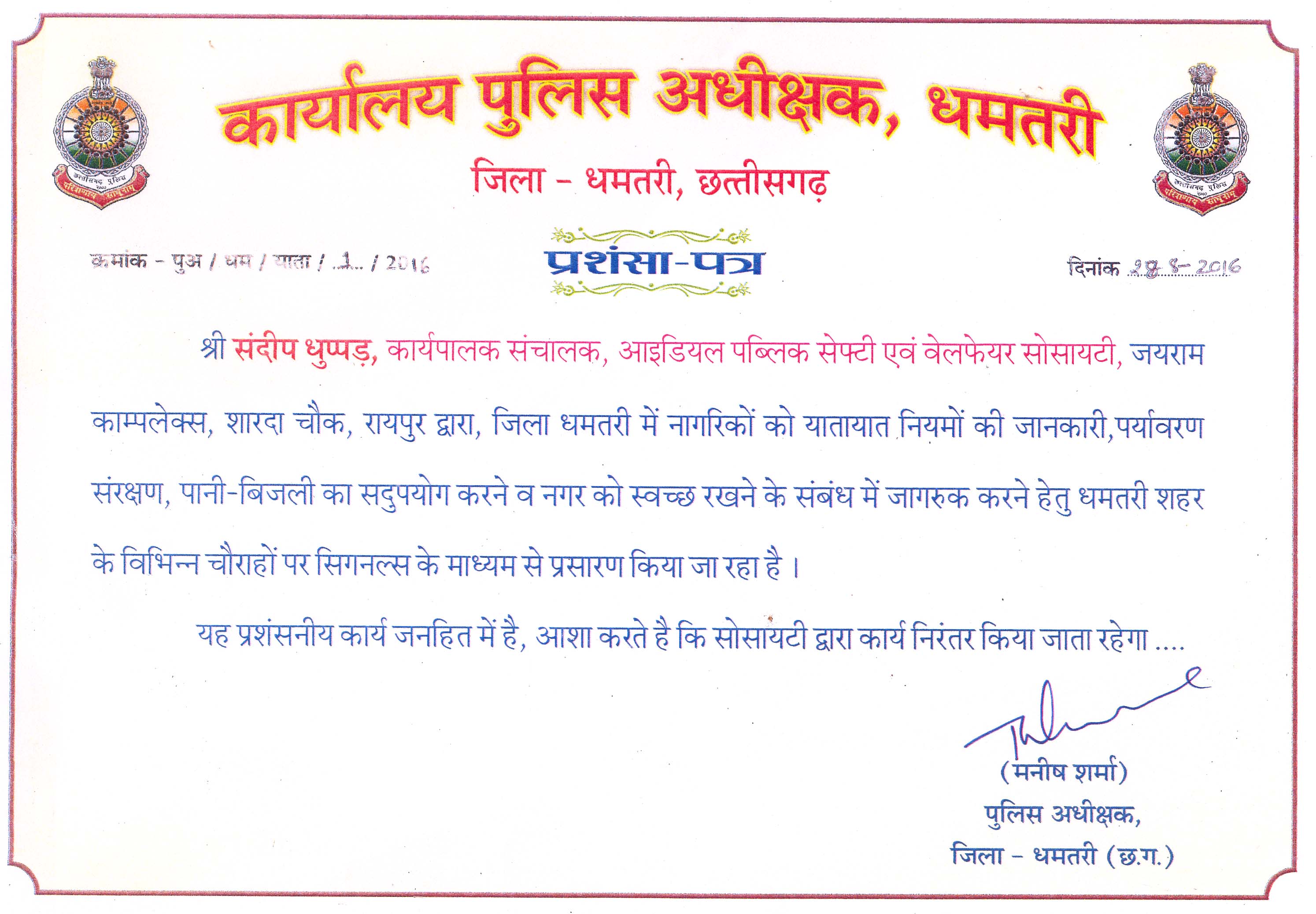 Dhamtari Police Appreciation